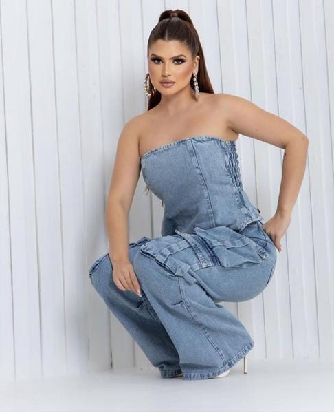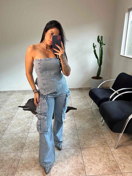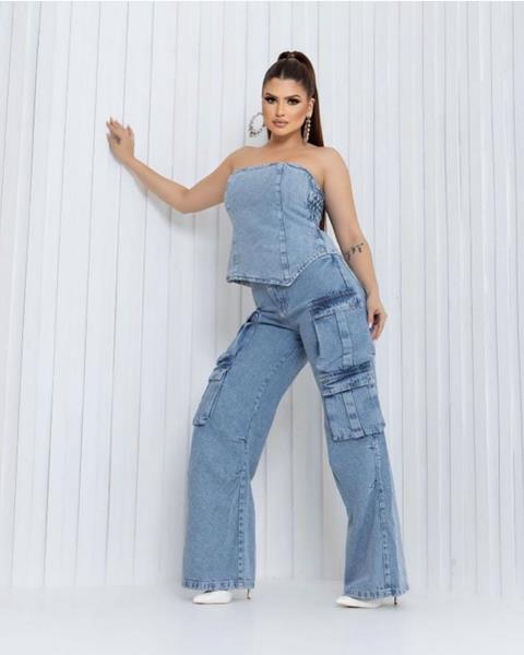 Possui cintura média e múltiplos bolsos utilitários laterais, que trazem funcionalidade e estilo urbano. Confeccionada em denim claro com ótimo caimento. Versátil e cheia de personalidade — perfeita para compor looks casuais ou mais elaborados.