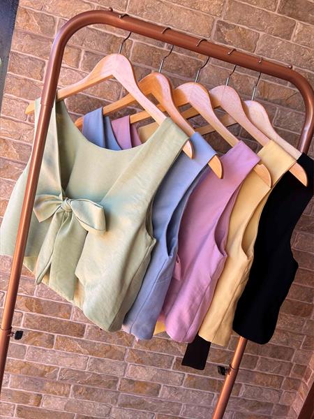 Feito em tecido de linho leve e sofisticado, esse cropped traz o charme do laço nas costas, garantindo um visual romântico e moderno ao mesmo tempo. A modelagem ajustada valoriza a silhueta, enquanto as cores candy deixam o look ainda mais fresh e feminino.